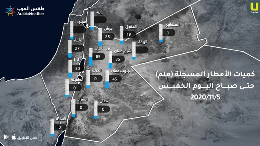 Jordan: The amounts of rain recorded since the beginning of the depression 4/11/2020 until Thursday morning 5/11/2020