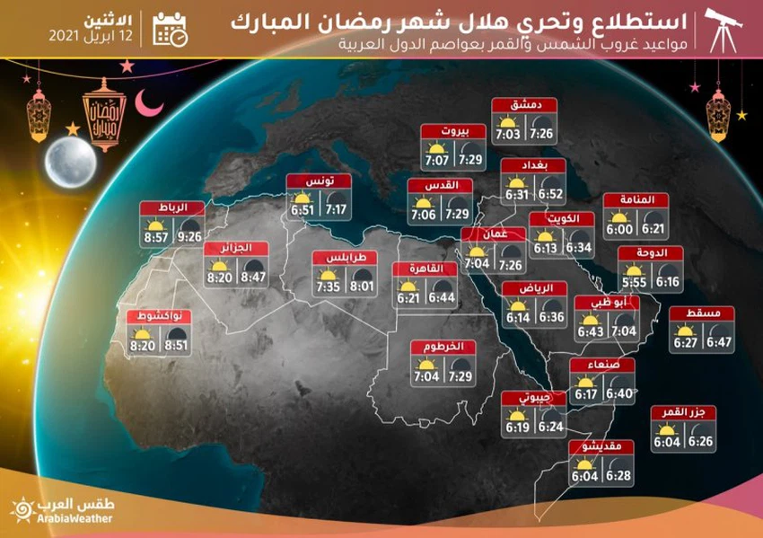 We note that Arab Weather will cover directly through its various platforms to cover the investigation of the Ramadan crescent 1442 AH - 2021 AD