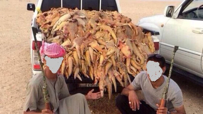 خلال السنوات الثلاث الماضية رصد ناشطون في مجال الطبيعة مشاهد لمجازر حقيقية تم ارتكابها بحق هذا الكائن الصحراوي، حيثُ ظهرت مجموعة من الصور لأشخاصٍ قامو بقتل الآف الضبان ووضعها في صندوق المركبة.