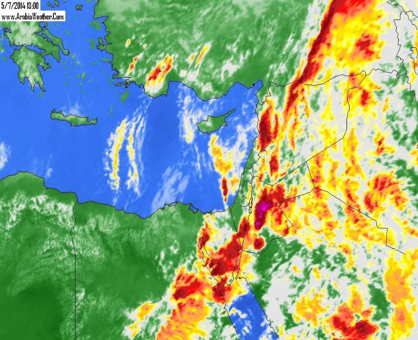 ويتوقع على حسب الخرائط الجوية التي تصل مركز طقس العرب الاقليمي الى تطور السحب الرعدية حتى القاهرة والاسكندرية واستمرارها فوق سيناء ، والتي تؤدي الى تساقط الامطار الرعدية والتي قد تكون غزيرة وذلك خلال مساء الاربعاء ونهار الخميس.