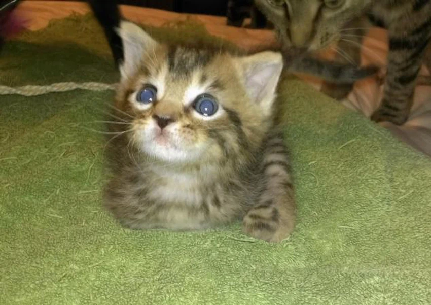 أصحاب القطّ عثروا عليه مُصاباً بينما كان عمره أيام قليلة فقط في سبتمبر من العام 2013،حيثُ أنه لم يكُن قد رأى النّور بعينيه لحدّ ذلك الوقت. و قد اقتيد القط الصغير آنها إلى طبيب بيطري و الذي قام بتنظيف جراحه و إطعامه على مدار الساعة حتى يستعيد قواه.