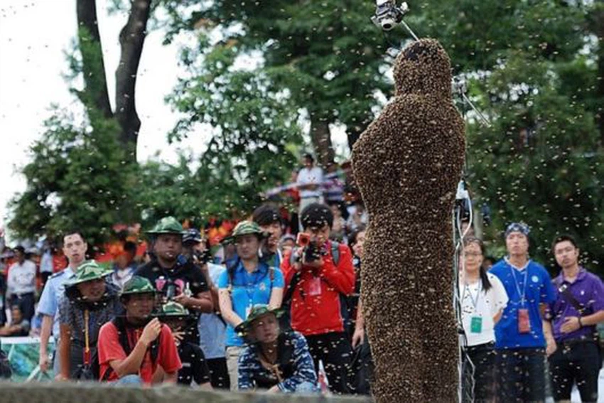 وتقوم هذه المسابقة السنوية على تنافس العديد من النحّالين الذين يحاولون جذب أكبر عدد ممكن من النحل على أجسادهم خلال 60 دقيقة فقط .