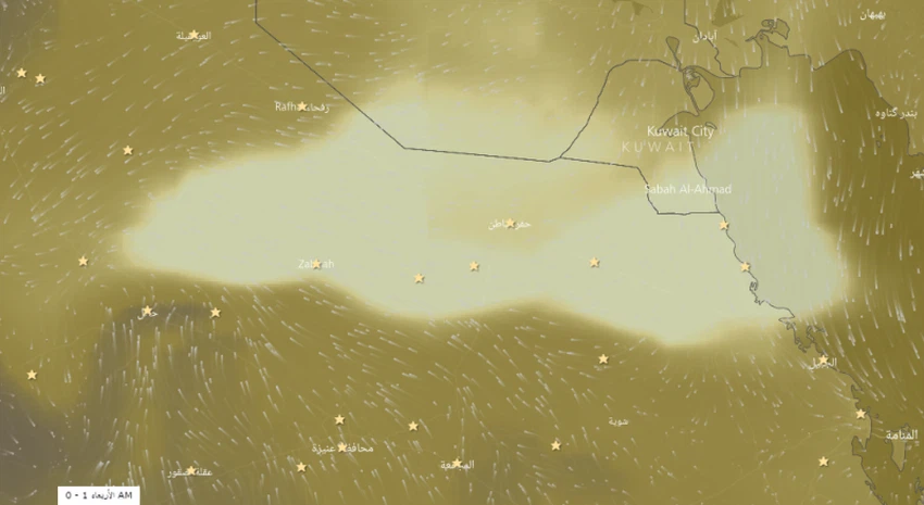 وبحسب حركة الرياح السطحية خلال الساعات المقبلة، يتوقع أن تنتقل الموجة الغبارية للمنطقة الشرقية، حيث يستمر تاثيرها في حفر الباطن ورفحاء وحائل وكذلك شمال القصيم ومنطقة حائل، خاصة الأجزاء الشرقية منها على هيئة عوالق ترابية كثيفة تنخفض معها حدة الرؤية الأفقية خاصة في الطرق السريعة وكذلك داخل المدن .