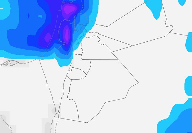 يوم الإثنين، تتأثر البلاد بإمتداد لمُنخفض جوي، بحيث توالي درجات الحرارة إنخفاضها لتُصبح دون مُعدلاتها السنوية العامّة، وتهطل "على فترات" زخات المطر مُترافقة بالرعد والبَرَد أحياناً، في شمال البلاد تمتد تدريجياً إلى أواسطها، بينما تمتد مع ساعات العصر إلى أجزاء من شمال النقب.