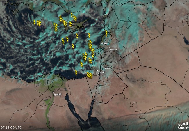 Météo d'Arabie - Les dernières images satellite de "Arab Weather" indiquent que la dépression est actuellement positionnée à l'ouest de l'île de Chypre, où elle est accompagnée de quantités de nuages de pluie et continue de se déplacer vers le Royaume.