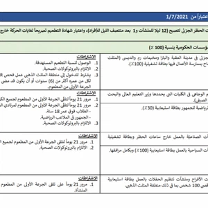 La deuxième phase, qui entrera en vigueur le jeudi 1-7-2021, et ces décisions comprennent :