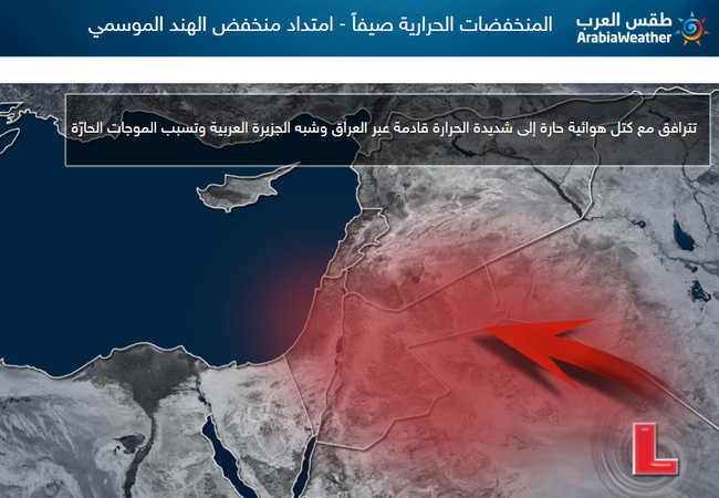 أو مُنخفض الهند الموسمي ( نتأثر في الأردن بكتل هوائية حارّة قادمة من الجزيرة العربية أو العراق)، وبالتالي يطرأ ارتفاع على درجات الحرارة.
