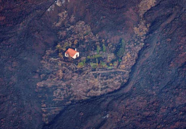 Météo d'Arabie - Lors d'un événement étrange et surprenant, une maison s'est miraculeusement échappée des coulées de lave qui l'entouraient, tandis que la maison restait debout d'une manière qui a incité les pionniers des sites de réseaux sociaux à faire circuler l'image de la maison située sur le L'île espagnole de La Palma, et ils l'appelaient la "maison miracle". .