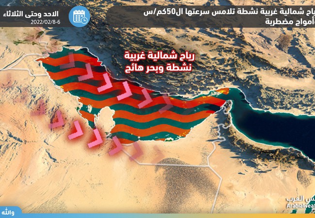 alerte | Vents actifs et vagues turbulentes, en particulier dans le centre et le sud du golfe Persique, de dimanche à mardi