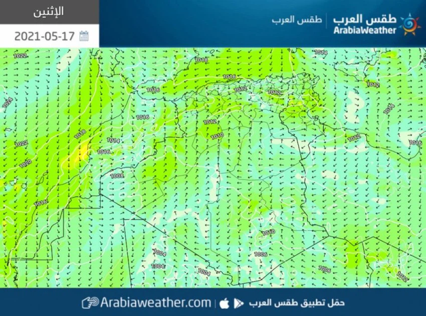 Météo de l'Arabie - Le flux de plus de courants d'air chaud augmente dans les couches de l'atmosphère près de la surface de la terre et venant du désert du Sahara vers la République d'Algérie, ce qui entraînera une augmentation supplémentaire des températures lundi, donc que le temps chaud prévaut dans les régions du nord et très chaud dans le reste des régions, comme c'est le cas dans ce Des taux plus élevés que d'habitude pour cette période de l'année de plus de 6-8 degrés Celsius.