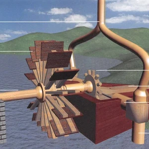 Ensuite, de grandes norias ont été fabriquées pour élever l'eau des rivières à débit rapide vers un terrain plus élevé, où les norias sont entraînées par la force de l'eau qui coule sur une pelle fixée au bord du seau, de sorte que les seaux sont remplis d'eau, et le la noria l'emporte lorsqu'elle tourne vers le haut où elle se vide dans un réservoir supérieur relié au cours d'eau.Les Perses et les Romains utilisaient La roue hydraulique, mais les Musulmans y apportèrent des améliorations qui conduisirent au développement de ses performances.