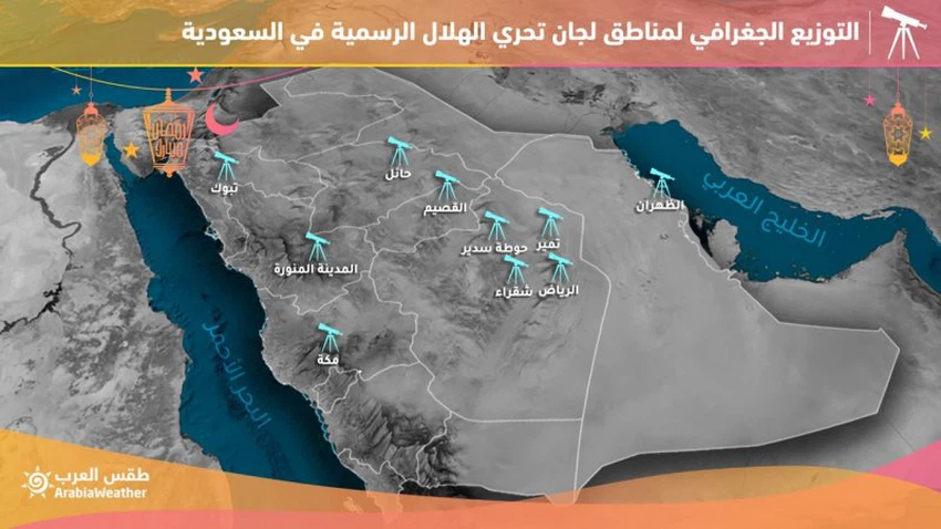 Météo arabe - Les comités d'enquête officiels du croissant du Ramadan ont pris place il y a quelque temps dans 10 endroits en Arabie saoudite, à savoir Hotat Sudair, Tamir, Shaqra, La Mecque, Médine, Riyad, Dhahran, Qassim, Hail et Tabuk