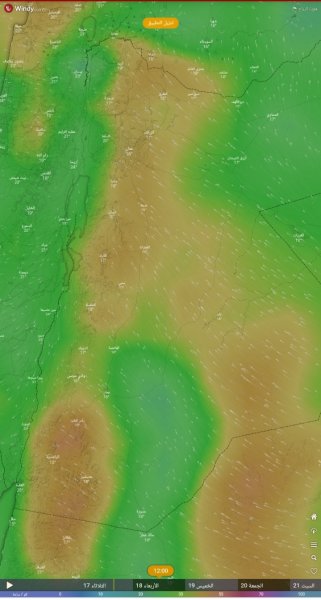 طقس العرب - تشير مخرجات النماذج العددية إلى توقعات بازدياد سرعة نشاط الرياح الشرقية/الجنوبية الشرقية خلال ساعات الليل المتأخرة ونهار يوم الأربعاء بحيث تترواح سرعة الهبات مابين (30-50)كم/ساعة ورُبما تتجاوز ذلك في المرتفعات الجبلية والمناطق الشفا غورية.