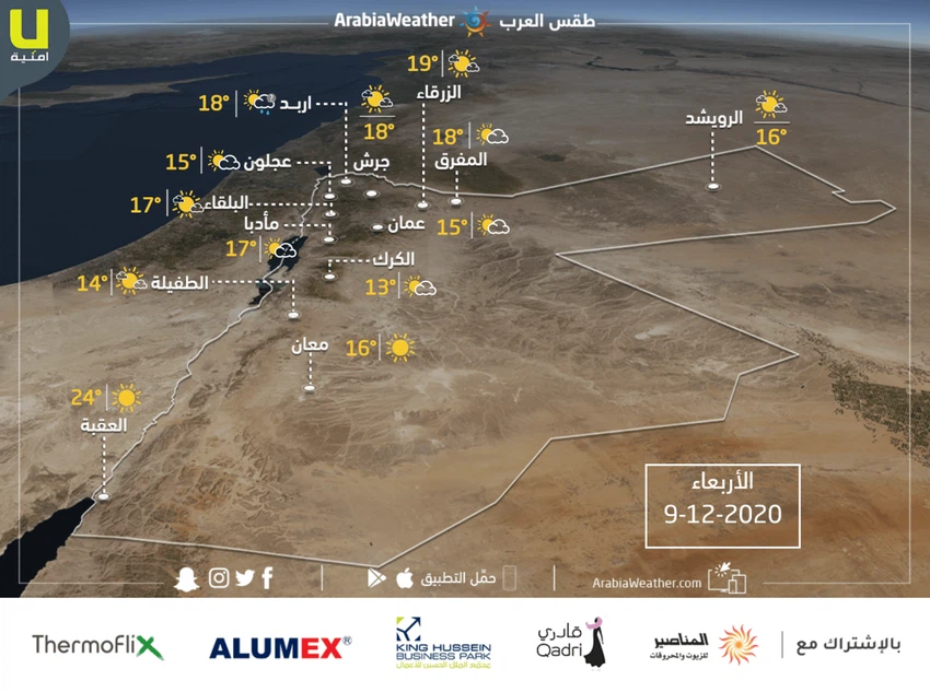 طقس العرب - حالة الطقس المتوقعة في الأردن يوم الأربعاء 9/12/2020