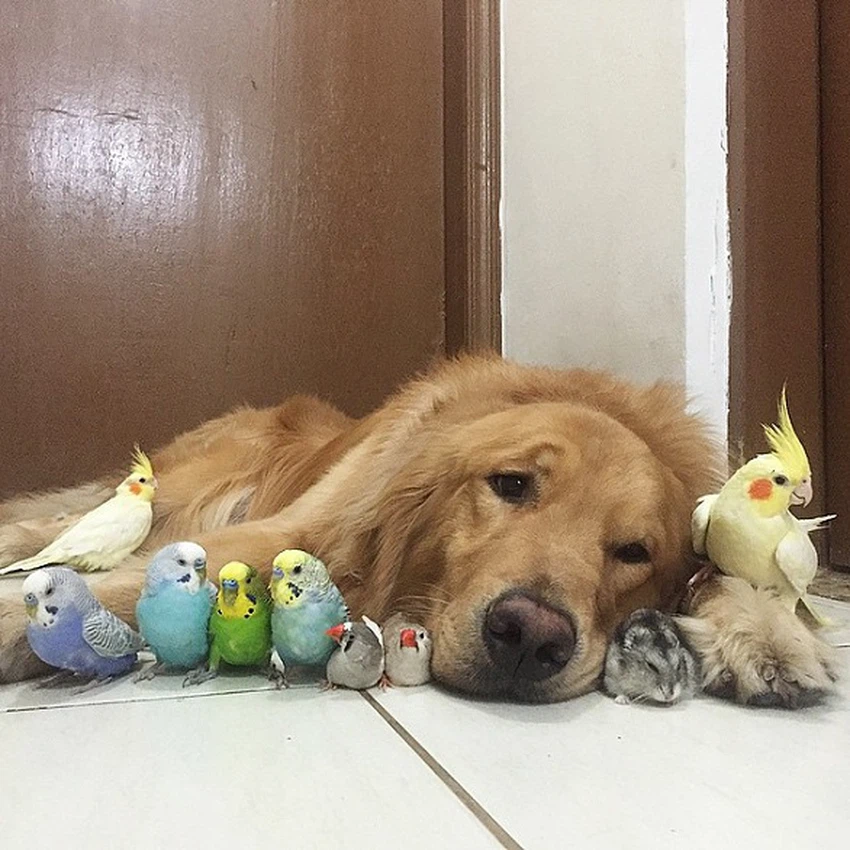 موقع ArabiaWeather.com- الكلب "بوب ذا جولدن ريترايفر" لديه حاسب على موقع انستغرام، ويتبعه نحو 160 ألف متابع ، وينال آلاف الإعجابات الأخرى على حسابه في موقع فيس بوك، حيث لفتت الصداقة العجيبة و العامرة بالمحبة، بين الكلب وفأر هامستر و8 عصافير أنظار الجميع.